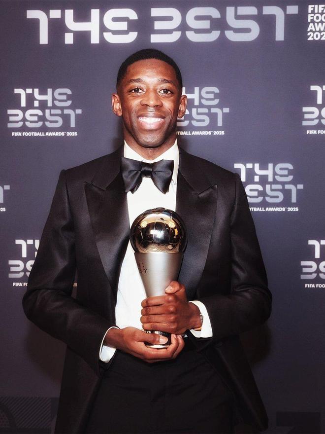 个人荣誉层面,登贝莱上赛季获得了法甲金靴、法甲最佳球员、欧冠最佳球员。此外,登贝莱还在9月底获颁2025年金球奖这一重量级的个人奖项。